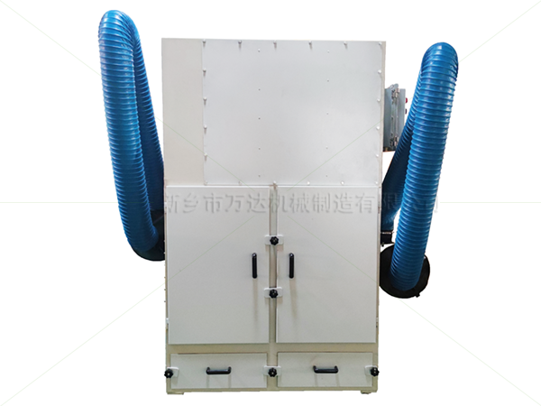 含塵氣體進(jìn)入除塵器,灰斗后,由于氣流截面的突然擴(kuò)大和氣流分布板的作用,氣流中的一些粗顆粒在動(dòng)力和慣性力的作用作用下沉降在灰斗中。粒度細(xì)、密度低的粉塵顆粒進(jìn)入粉塵過(guò)濾室后,通過(guò)布朗擴(kuò)散和篩分的共同作用,粉塵沉積在濾料表面,凈化后的氣體進(jìn)入潔凈空氣室,通過(guò)風(fēng)機(jī)從排氣管排出。